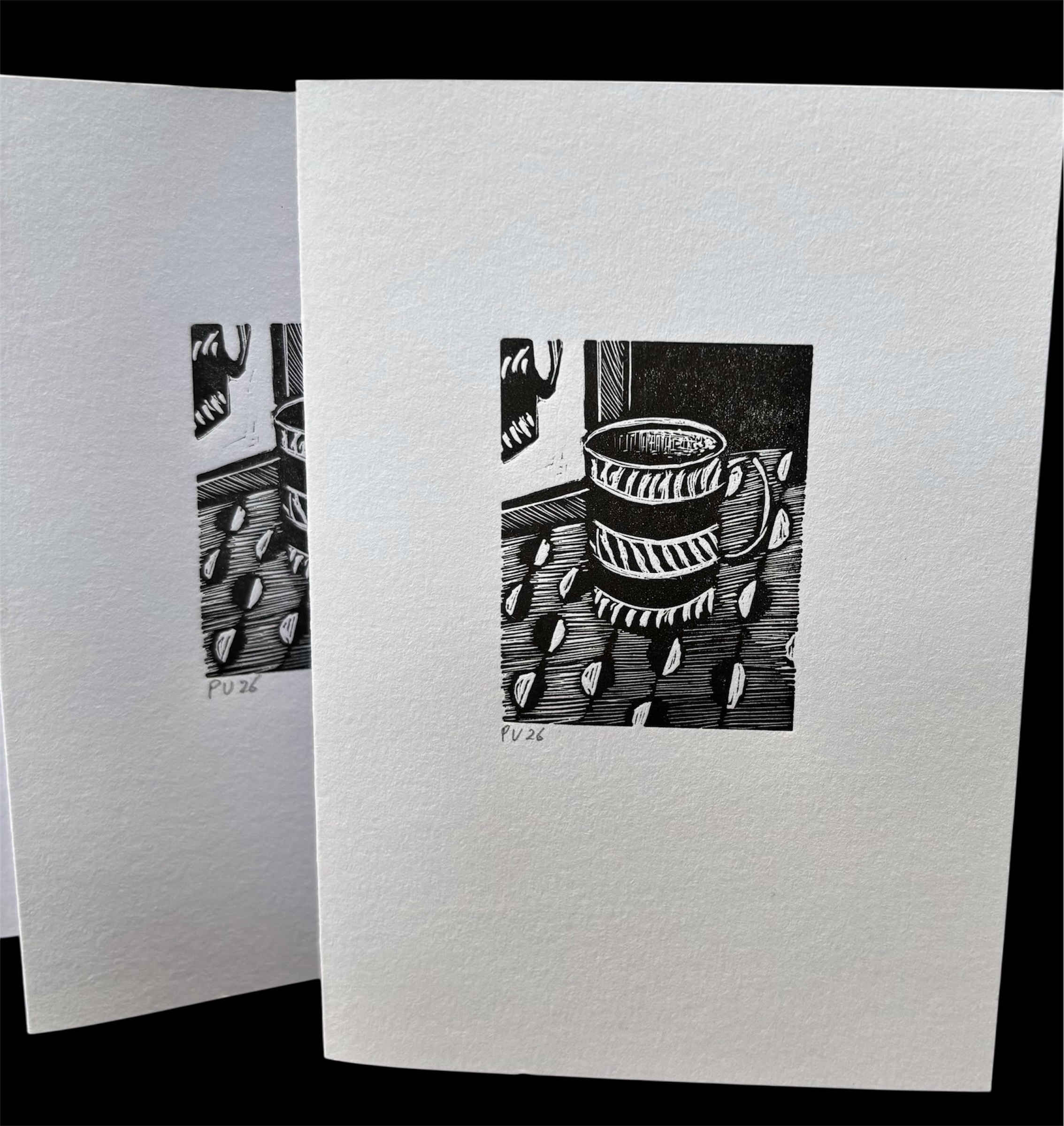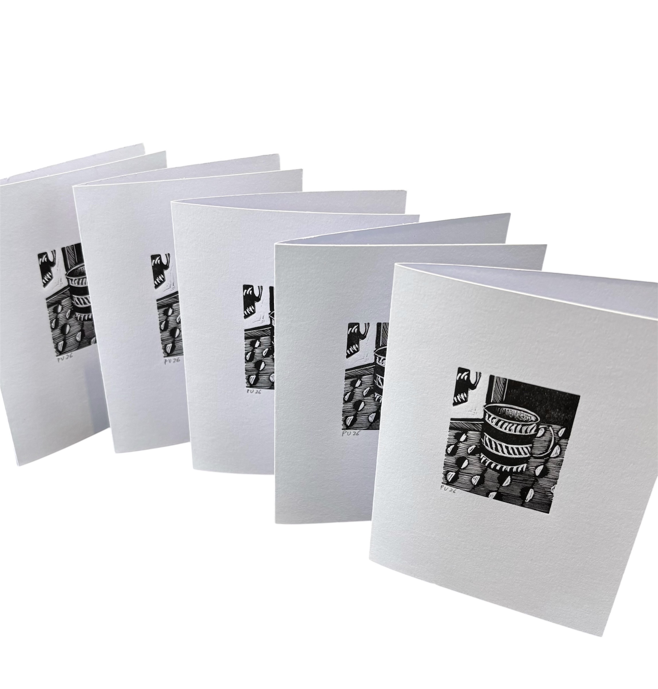 Set of 5 original wood engraving cards (Mug and Mirror)
